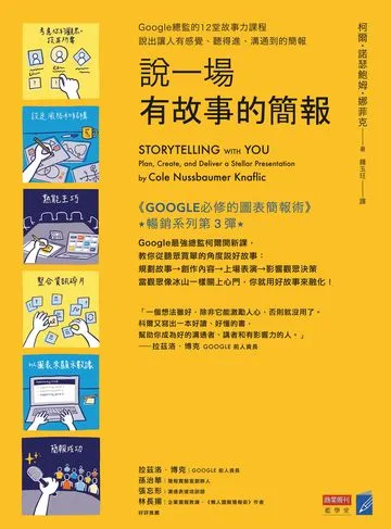 本書是Google必修的圖表簡報術系列的第三書,以明確步驟解決問題、說好故事。你可以馬上學會,在下一場簡報發揮出來。了解更多…