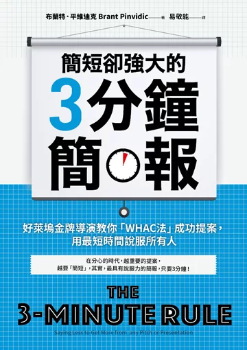 過去20年,人類的平均注意力不斷縮短,至今只持續8.2秒,這不代表我們都是弱智、無腦又心不在焉,反而是人們更專注也更有效率,對資訊的要求更嚴格。 好萊塢獲獎導演、金牌製作人布蘭特.平維迪克,獨創的「3分鐘簡報」,不只適用於好萊塢,更能運用在各行各業,讓任何人都能打造只要3分鐘,就能吸睛而奏效的提案!