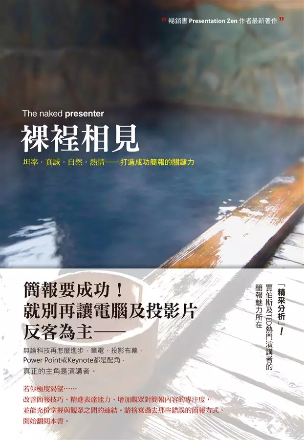 《裸裎相見》由簡報大師Garr Reynolds所著,主張裸露式簡報,即以真誠自然的方式傳遞信息,並消除所有干擾。賈爾認為,裸裎式簡報不僅能讓講者更真實、坦率地面對觀眾,更能強化簡報的影響力。書中提出簡報八步驟,從準備重點到設計草圖,再到投影片的視覺呈現,幫助簡報者更有系統地組織內容。此外,作者強調情感在簡報中的重要性,鼓勵講者以熱情去感動觀眾,並建立情感連結。結尾則需設計成具「黏性」,以便觀眾深刻記憶,甚至鼓勵行動。書中引用鈴木俊隆的名言「如實呈現自己」,鼓勵講者不必完美,只需自然真誠。最終,作者提倡不斷的自我挑戰,通過連結、貢獻和改變,講者不僅能讓簡報更具說服力,也能激勵自己及聽眾。了解更多…