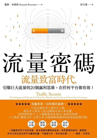 本書是一部專為現代企業家設計的流量實戰指南。作者以其15年的行銷經驗,提出20個具體的流量策略,幫助企業從夢想客戶的定位開始,到多平台布局,最終實現流量轉化與增長。強調「流量即人」,且這些理想客戶早已在線上聚集,關鍵在於如何定位他們並有效導入你的銷售漏斗。